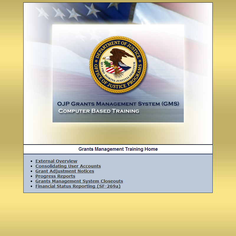 Department of Justice Grants Management System Computer-Based Training
