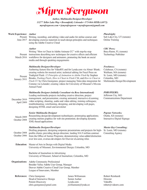 Multimedia Designer/Developer • myraferguson@gmail.com