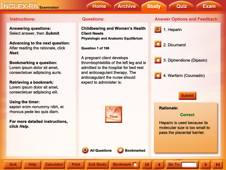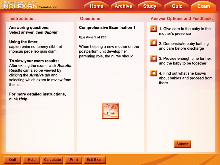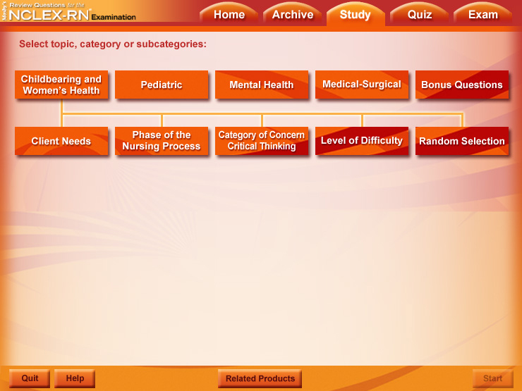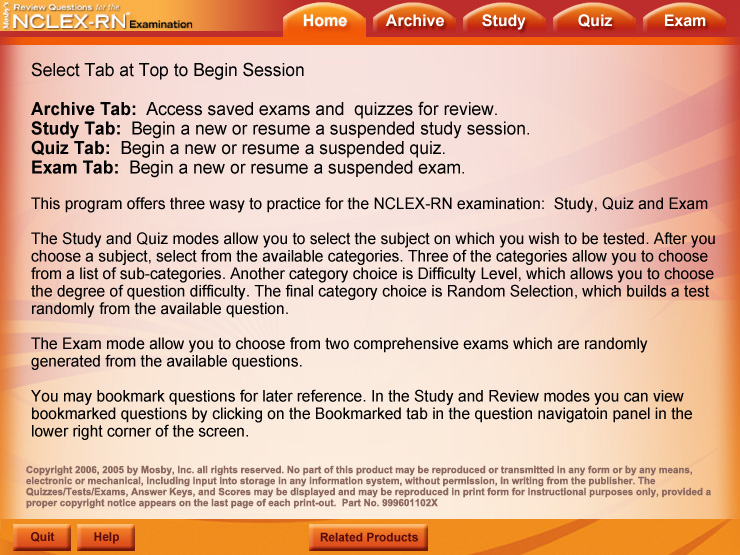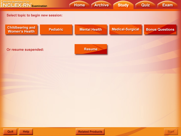 The interface design inspired by the book cover gives Elsevier's Sixth Edition of the NCLEX-RN Student CD a bright look.