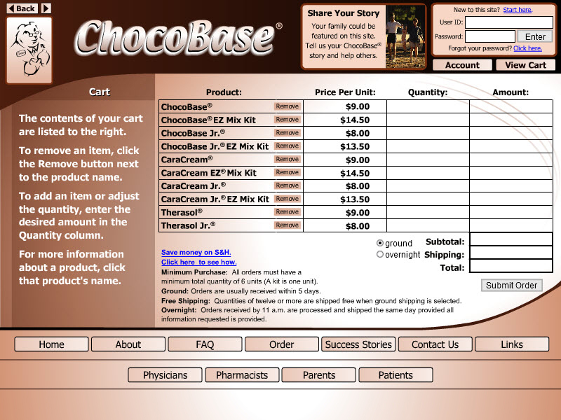 This all-Flash interface delivers a rich internet experience with an interactive shopping cart, online registration, and online order submission.